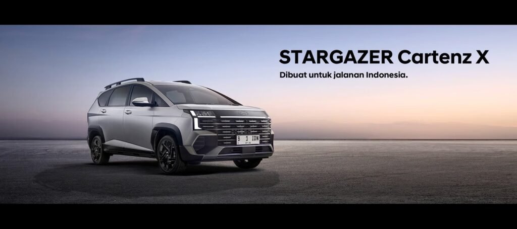 Hyundai Stargazer Cartenz X merupakan varian tertinggi dan paling tangguh dari lini Stargazer, menggabungkan kenyamanan MPV keluarga dengan aura sporty ala SUV. Dengan desain yang lebih gagah, fitur lebih lengkap, dan kabin yang lapang, Cartenz X cocok untuk keluarga aktif yang menginginkan kendaraan serba bisa dan penuh gaya.